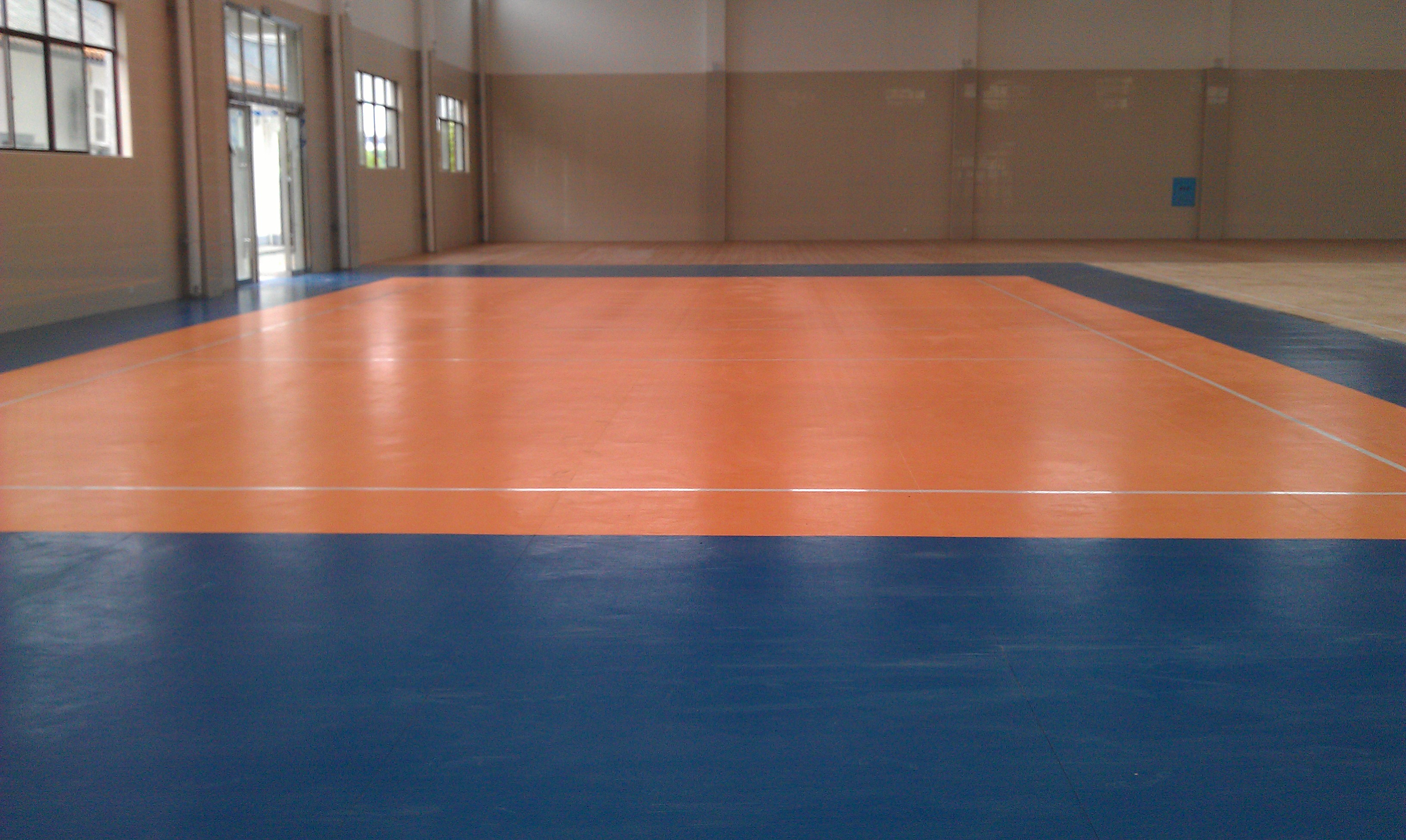 一.產(chǎn)品適用范圍:可根據(jù)客戶選擇產(chǎn)品的顏色訂做生產(chǎn)專業(yè)羽毛球場地. 乒乓球場地.籃球場地. 網(wǎng)球場地. 排球場地. 健身房. 文化活動中心塑膠場地. 文體培訓(xùn)活動中心塑膠場地. 體育活動中心塑膠場地. 青少年活動中心塑膠場地. 工會活動室塑膠場地等多種花紋多種.......健身活動場所運動場所運動地板 二. 穩(wěn)定性 運動地板產(chǎn)品結(jié)構(gòu)中添加了1000D的玻璃纖維補強網(wǎng)和特殊網(wǎng)格布纖維加強層,保證了本產(chǎn)品在運動過程中尺寸的穩(wěn)定性及牢固性,并起到了自動補強作用。 三. 牢固性 運動地板發(fā)泡層底面用紋路,合理的重量能在場地鋪開后結(jié)合人工用滾地筒將地板與地面接觸間的空氣排出,形成相對真空狀態(tài),更加具有附著力,在運動時更具有穩(wěn)定性。 四. 舒適性 運動地板表面經(jīng)特殊處理,與燈光亮度吻合,不會吸光和反光刺眼,能更好的保護運動員的眼睛,不易產(chǎn)生疲勞,總厚度達4.5mm,配以適當(dāng)發(fā)泡底層為緩沖層,使其更具有減震性和反彈。有效地減輕了運動員的腿部沖擊力,腳感舒適,更好的避免了運動損傷,提高運動員水平的發(fā)揮。 五. 耐久性和耐磨性 運動地板采用100%純PVC優(yōu)質(zhì)材料,面層經(jīng)特殊高環(huán)保高科技材料TPU技術(shù)處理,及具最佳耐久性和耐磨性,從而增加了地板的使用壽命。 六. 保養(yǎng)容易 運動地板表層(特別是面層添加特殊高科技TPU處理的表層)對外界污染有排除能力,如表面污染,用干凈拖把、清水刷洗即可。重點臟污可用中性清洗劑清洗。單氣孔封閉式pvc底紋經(jīng)過澀感、防水、防霉、抗菌處理,使產(chǎn)品本身具有自我保護的屏障,從而增強了產(chǎn)品的自我排污的功能! 七. 優(yōu)秀的降低噪音效果(降低25db/28db) 運動地板標(biāo)準(zhǔn)的底層厚度,加上適合的反彈性和合理的吸震性,在運動中具有吸音的功能,隔音效果好。 運動地板的結(jié)構(gòu)