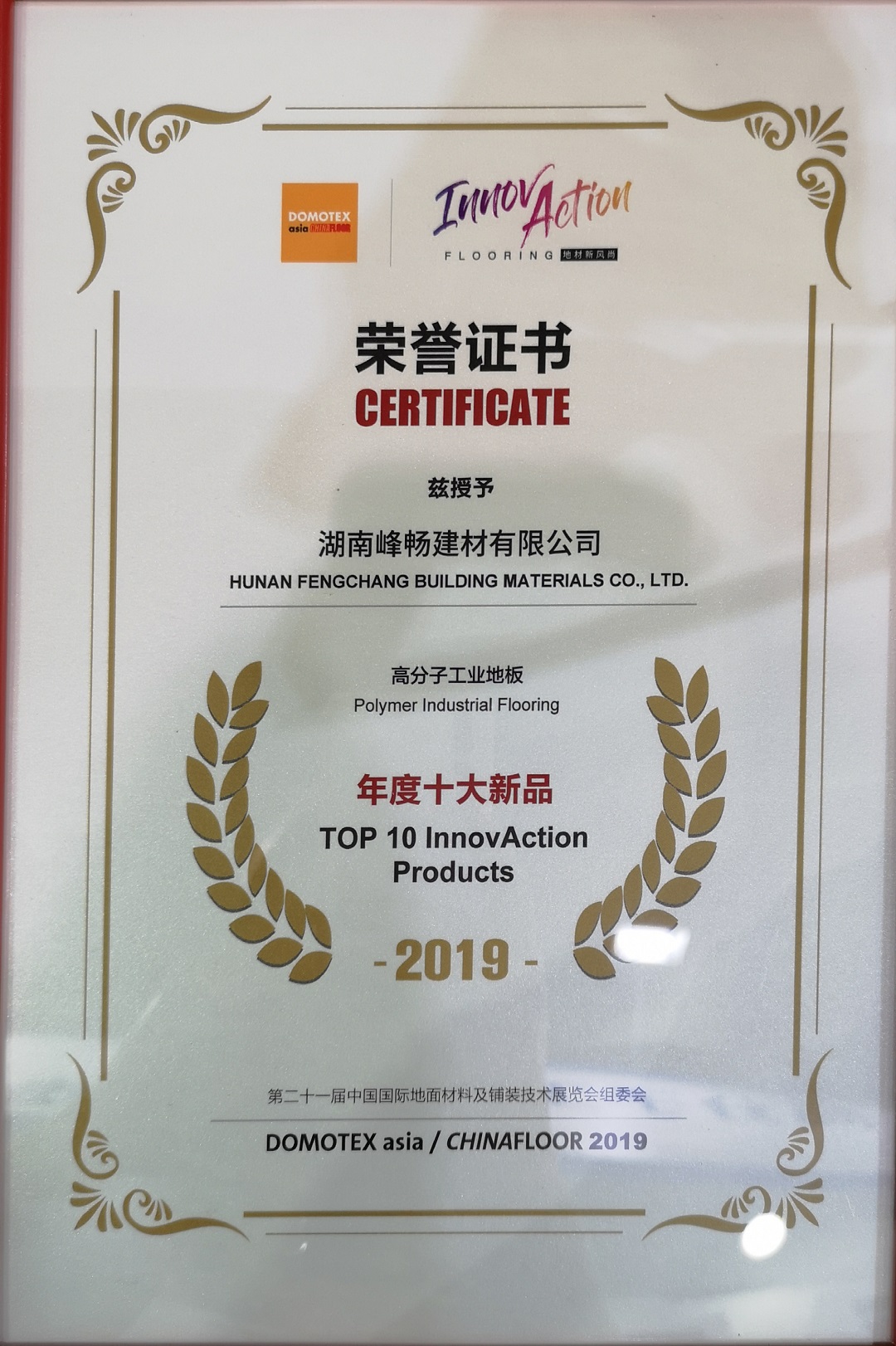 科洛弗高分子工業(yè)地板在2019年InnovAction地材新風(fēng)尚活動中獲評年度十大新品獎項