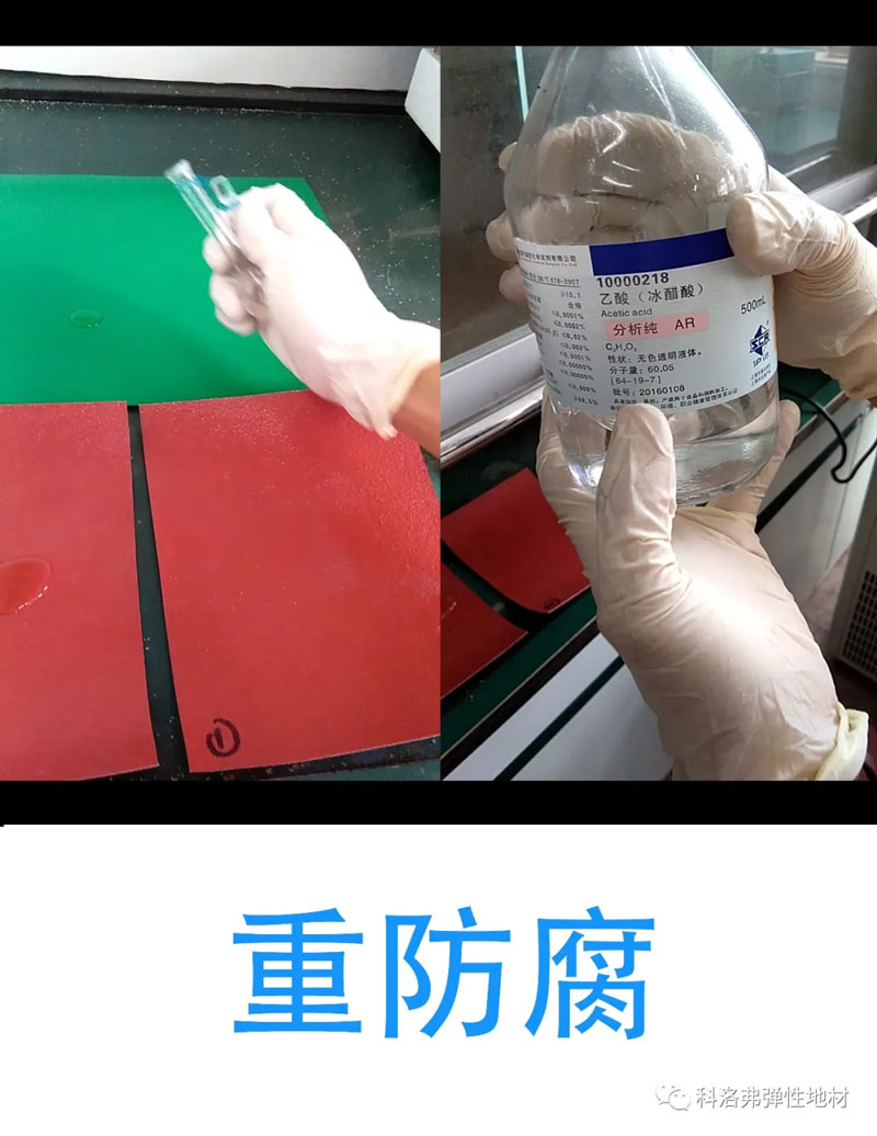 11 高彈性和超強抗沖擊:高分子工業(yè)地板質(zhì)地較軟彈性較好,在重物的沖擊下有著良好的彈性恢復(fù),其腳感舒適遠超水磨石,環(huán)氧等