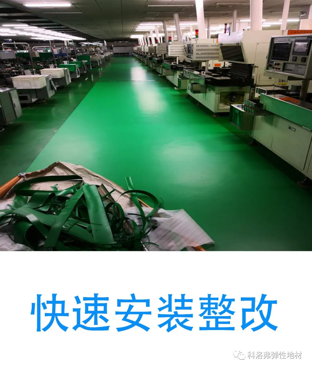 9 吸音防噪:高分子工業(yè)地板有普通地面材料無法相比吸音效果,其吸音可達12-20分貝,可以減少工廠環(huán)境噪音,營造安靜的生產(chǎn)環(huán)境。