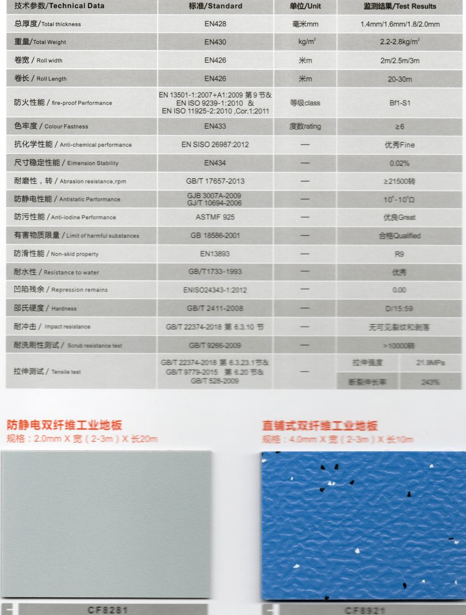 2 防靜電:獨特的防靜電配方使地板具備優(yōu)異的防靜電性能。